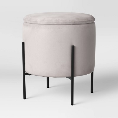 Product title faux leather storage ottoman, white average rating: Osp home furnishings midcentury black faux leather round storage ottoman. Isabelle charcoal round tufted ottoman, 34.63w x 34.63d x 18.13h, black by linon home decor products (1) $231. 4.7 out of 5 stars. Candiko white velvet upholstered gold metal stool ottoman.
